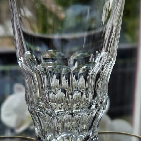 6 meget pene farrisglass fra Kosta. Diameter ca 5,5, høyde ca 11,5 cm. Slipt dekor. Pris samlet. PS! Et lite skår under stettet på det ene glasset.