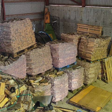 Leverer med henger og jekketralle. Triller veden til ønsket område ved bra underlag. Asfalt, belegningstein e.l