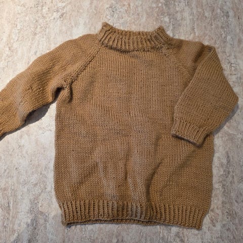 Strikket i merinoull som ikke klør. Litt lang variant som går over rumpen. Ca str 4-5 år. Pent brukt.