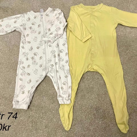 4 stk langarmet bodyer fra Carters. Pent brukt ingen hull eller skader. Brukt som pysj i sommer men kan bruke som hverdagsbody.