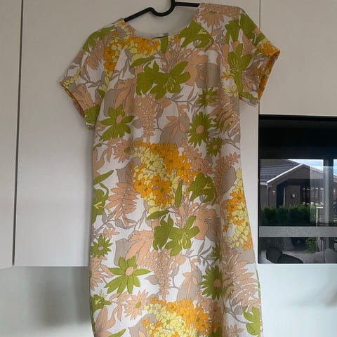 Oversize fargerik hippiekjole selges, da den henger for mye i skapet. Ukjent merke, men kjøpt på nisjebutikk. Jeg har lagt den opp, så den er perfekt fotsid til person på 167 cm 😁 Utrolig deilig stoff. V skjæring i halsen, noe dyp. Lange armer med strikk i håndleddet.