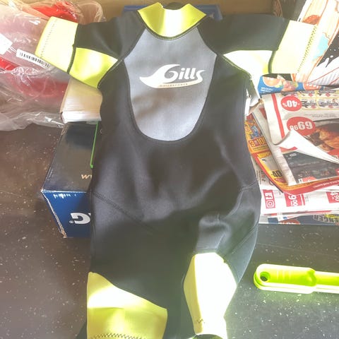 Gills våtdrakt knapt brukt. Str 4år. Vi har den samme i større størrelse og barna er veldig fornøyde :)
