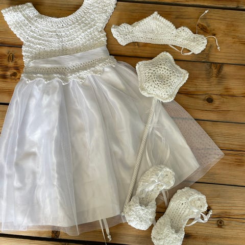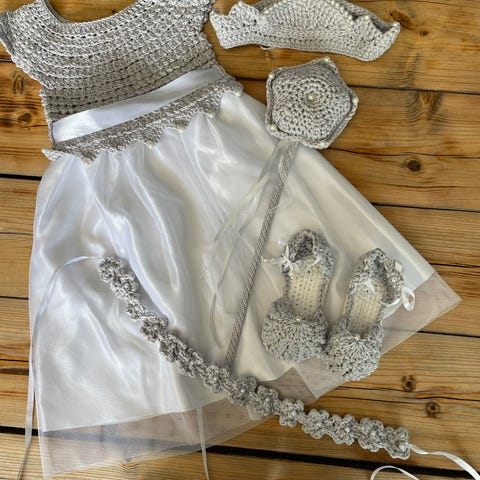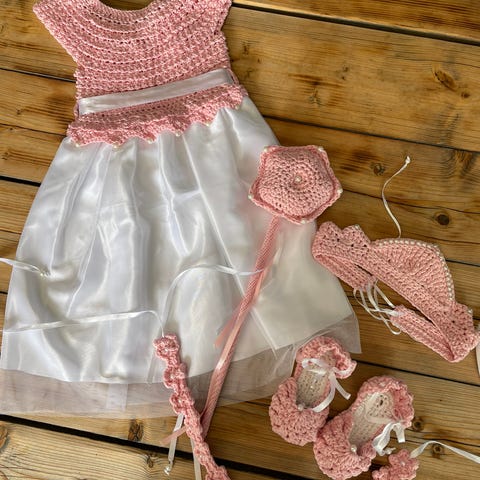 Heklet kjole til fest, barndåpen passer fra 2 til 2,5 år