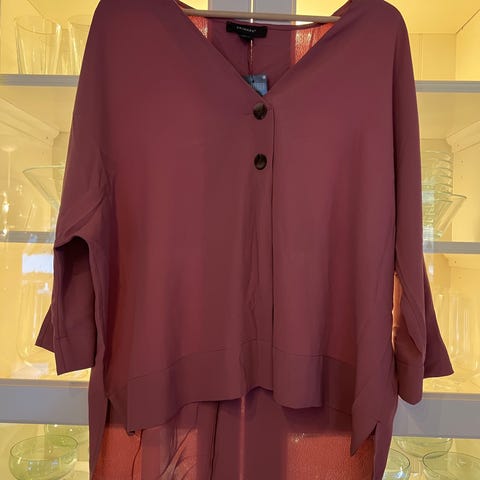 Elegant tynn bluse i plommefarge – Størrelse 52