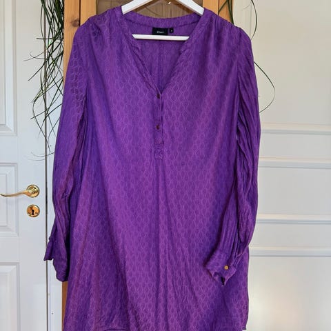 Lekker og stilfull bluse i en vakker plommefarge. Den har kule knappedetaljer i halsen og 3/4 lange ermer som gir et sofistikert preg. Laget i 100% polyester, som gir et lett og komfortabelt plagg.