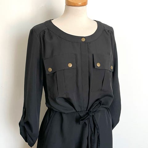 Kul kort kjole/tunika med blomstermønster på sort bakgrunn. Justerbare skulderstropper og V-hals. Glidelås i siden. Kolleksjon fra engang tidlig på 2000-tallet fra Cubus. Laget av 100% polyester.