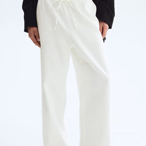 Disse buksene er laget av linblanding og har en avslappet passform og rette brede bein. De har en elastisk midje med et knytbar snøre og lommer i sidesømmen. Relaxed modell.
