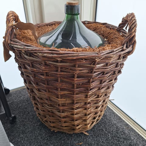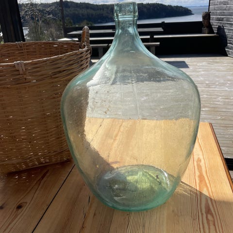 Stor, flott, og gammel vinballong selges. Naturfarget glass med turkis skjær i. Ballongen var tiltenkt å bli til et "lukket økosystem" med planter og nyttedyr, men interessen har gitt seg. Eksempelbilde vedlagt