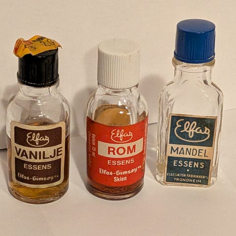 De små er 15 cm høye og 8,5 cm brede. Den med hette (snapskopp) på toppen har vanlig kork under. Det største er ca. 18 cm høyt og 10 cm bredt.