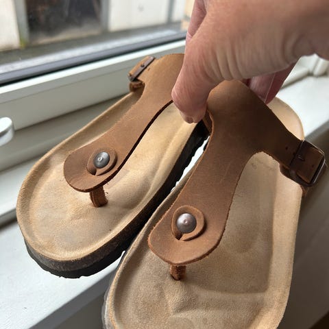 Skal du reise til varmere strøk, så vil disse være supre å ta med!Virkelig fine sandaler i preget skinn.