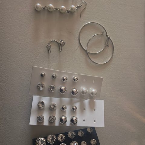 Ubrukt brett med ulik ørepynt