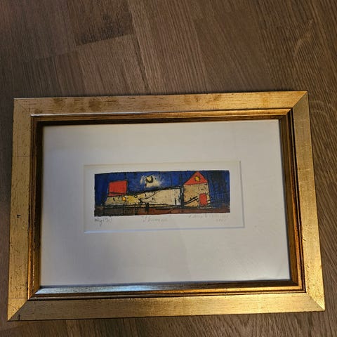 Gammelt bilde, i fin gullramme, spansk motiv med tyrefekter.
