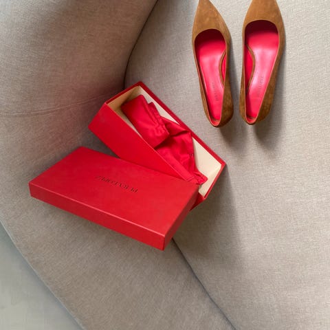 Rubber healed Ladies elegant blue and genuine suede upper shoes