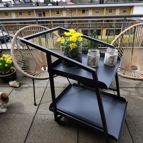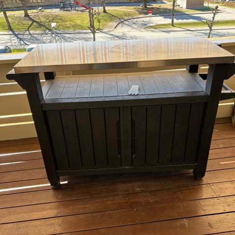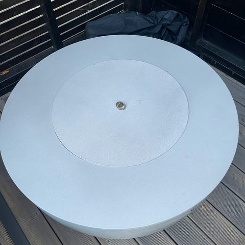 Selger bord i betonglignende materiale til oppbevaring av gassflaske. Fungerer også veldig fint som eget avlastningsbord. Str 40x40x63cm.
