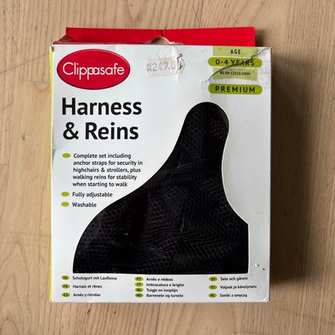 Universal tekstilsele med reflekstråder. Enkel å tilpasse barnet og passer for de fleste typer barnevogner. Kan også brukes som gåsele eller stolsele.