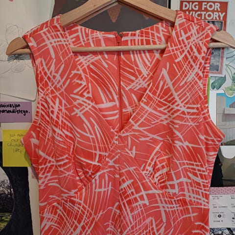Søkeord som ikke nødvendigvis stemmer: blomsterkjole blomstermønster japansk inspirert mønster fersken rosa hvit, pastell, kort, sommerkjole, festkjole, cocktail kjole, kjole til bryllup, small, drape dress, cut out, vintage stil retro kimono omslagskjole