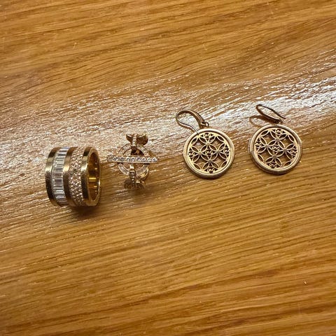 Michael Kors smykkesett med halskjede og øredobber i sølv. Halskjedet har et rundt anheng med merkets logo. Øredobbene er enkle og elegante, perfekt for daglig bruk eller spesielle anledninger. Laget av slitesterkt materiale med en blank sølvfinish.