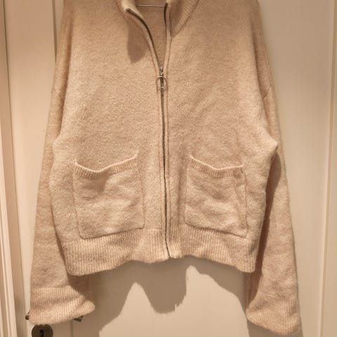 Flott jakke med lommer og glidelås. God og varm. Nesten ubrukt.