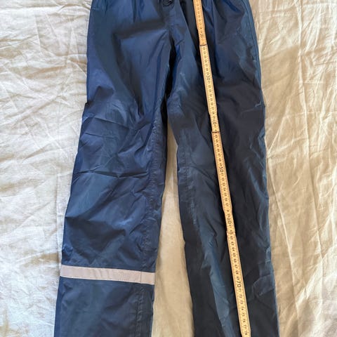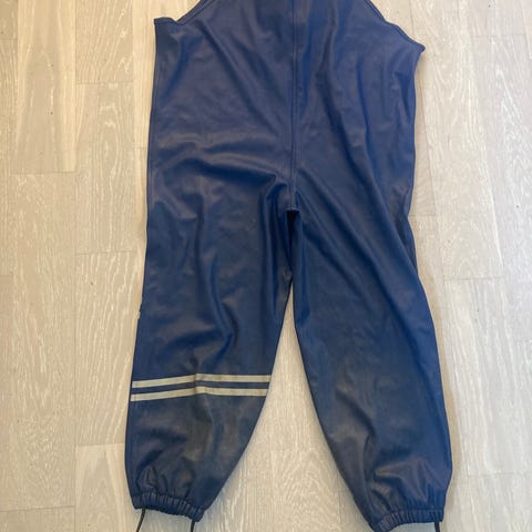 Selger en brukt foret regnbukse. Denne er helt topp foret gjør at den kan også bruke i kalder dager hvor det er snø. Trykk knapper på siden gjør at den holder barnet tørr med en ytterjakke over.