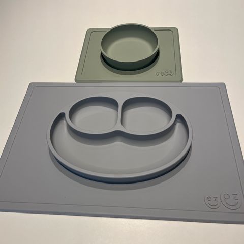 Som ny, vart aldri brukt av oss. Fat med matte i silikon som festar seg på harde underlag. Farge: grå.