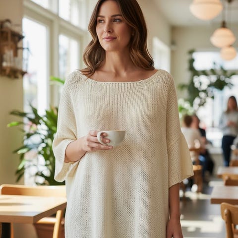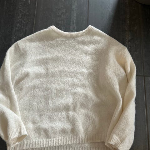 Selger en langermet pen hvit genser.