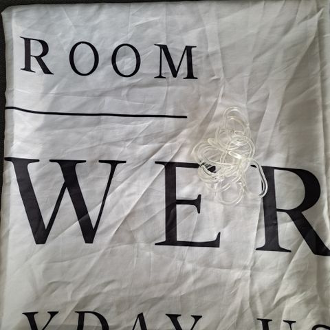 Knapt brukt dusjforheng "Circles" Clas Ohlson + ringer til oppheng