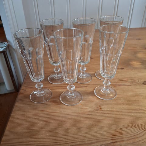 Selger 4 champagne glass, da de dessverre ikke blir brukt. Det ene glasset har et lite hakk, se bilde.