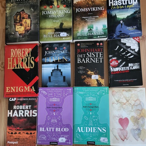 Boksamlingen må rasjonaliseres av plasshensyn. Selger derfor unna en del krimbøker - 20 kr for hardcover og 10 kr for pocket. Mest norsk, et par på engelsk. Sender gjerne med Helthjem / Postnord eller Posten.