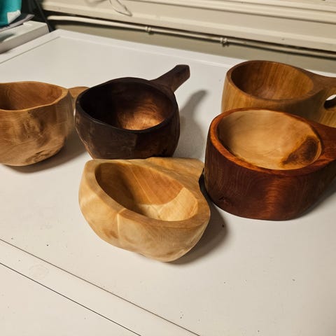 Tredreiing er en fin hobby. Jeg dreier bl.a turkopper som jeg nå legger ut for salg. Formen og størrelsen kan variere noe, - alt fra småkoppen til junior til storkoppen til den tørste turgåer.