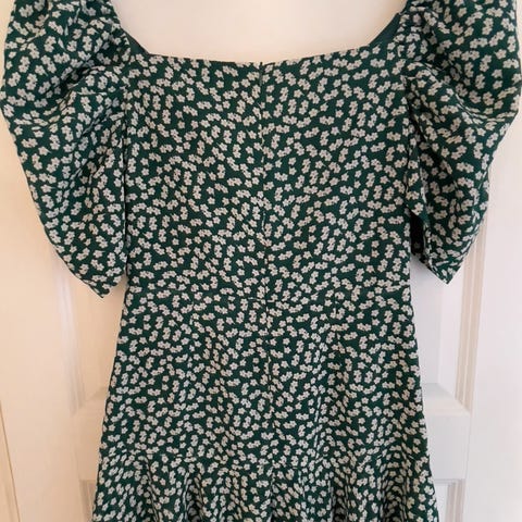 Kjolen er elastisk, har kort, volumin , firkantet fordypning, lengde til den lille med ruchkanten i bunnen.
