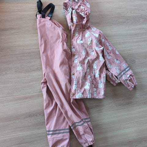 Helt og fint regnsett eneste synlige merket er at det er spist litt på kragen