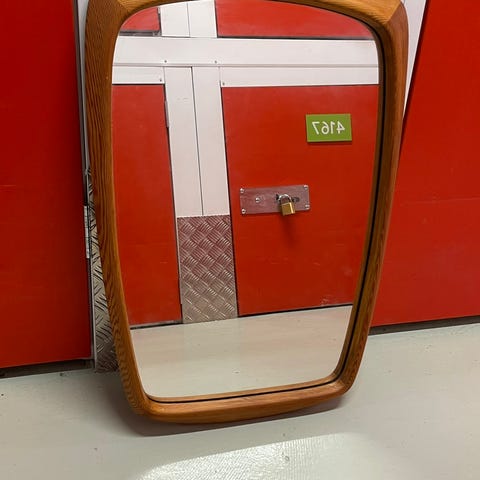 Fin stand retro, teak speil med stempel fra møbelfabrikk som jeg kan levere I Oslo for 100 kr