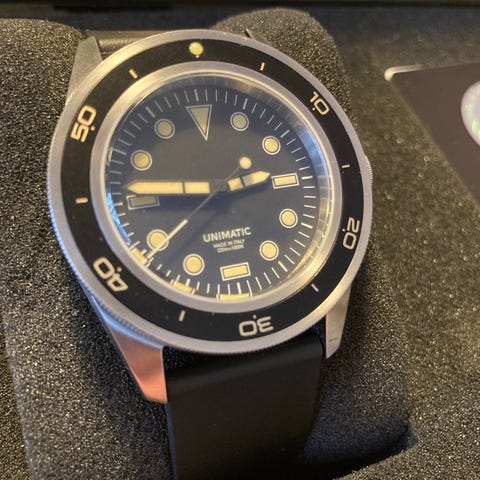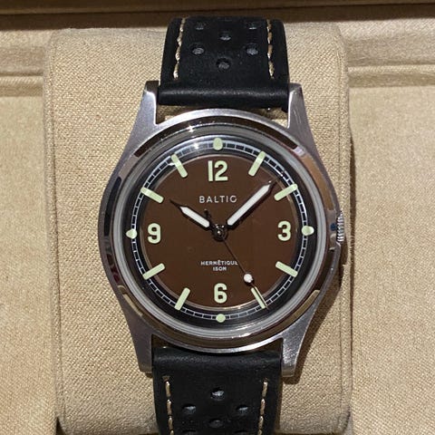 Noen av bildene er med en beige nato-rem. Den følger ikke med.