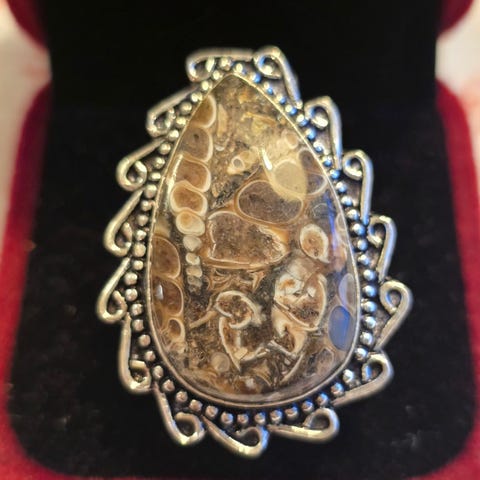 Dinosaurbein ring i sølv størrelse 7. Ekte sølv, stempelet på baksiden 925.