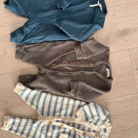 Heldrakt, bukse, hjemmesydd bleieshorts og sixpence, alt str 80. Gies bort ved kjøp av noe annet fra meg 🤗