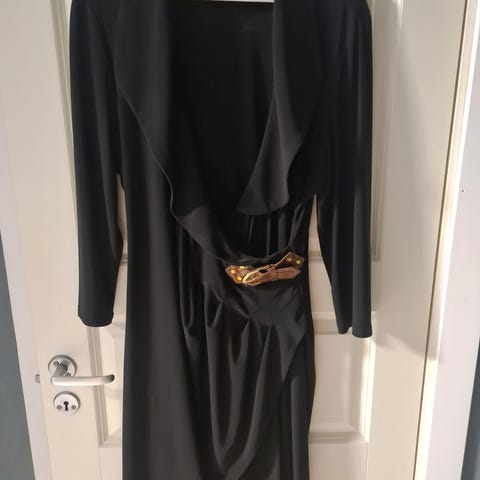 Nydelig lyseblå kjole med aprikos-rosa blomstermønster. Flaggermusermer og knytebånd i livet. Foret med underkjole. Flatterende og feminin fasong. Ble kjøpt en str for liten med håp om at den en dag skulle passe... har hengt i skapet siden, men nå er det på tide å innse at den tid ikke kommer og kjolen fortjener å bli brukt. Str 44.