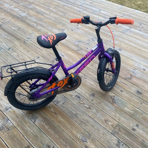 Pent brukt barnesykkel. Fra 2022, kjøpt meget pent brukt på Finn i 2023 for 1000,-Litt skade på ene håndtaket, se bilde