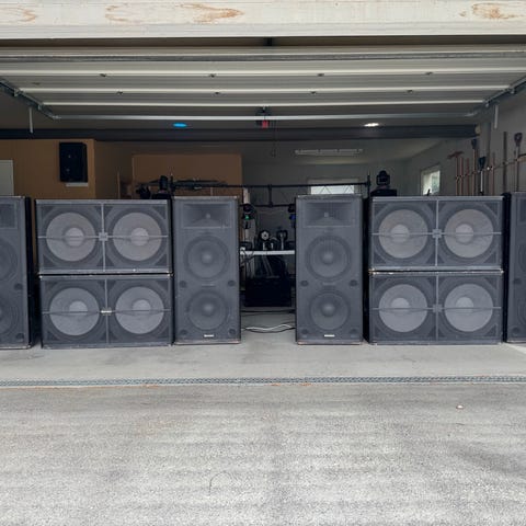 Vi leverer et stort og kraftig PA-oppsett med både line array og høyytelses-subber. Systemet kan skaleres etter behov.