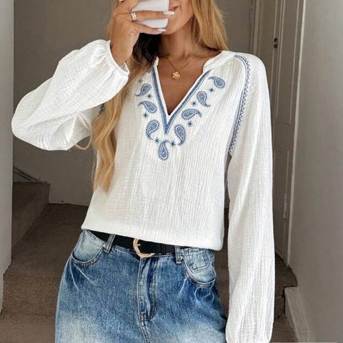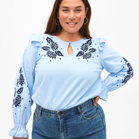 Denne blusen er som ny. 100% bomull med nydelige broderier.
