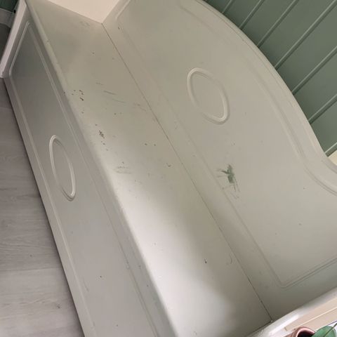 Ingen feil, god kvalitet, ekte trebenk med mye oppbevaringsplass, men hadde behøvd et nytt strøk med maling