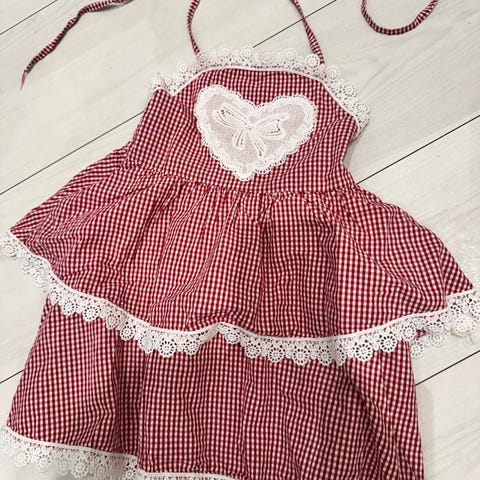 Rutete skjørt hvit og rødt skjørt med blonder 8 år