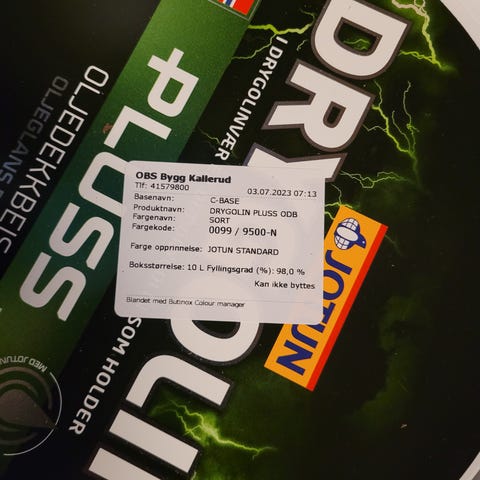 Oljedekkbeis kjøpt i 2018. Den er kun nylig åpnet for å sjekke kvalitet, og er rørt opp igjen av malingsforhandler. Kvaliteten er god og du kan bruke den som om den var ny. Siste bilde viser farge.