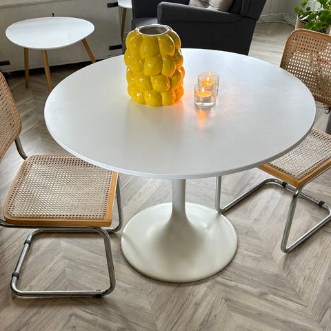 Fineste stolene 4 stoler som tar pusten fra en, selges med rundt hjerte da jeg ikke har plass til alle hjemme lenger. designerklassiker som virkelig er verdt å ha i hjemmet. Ønsker du noe som løfter interiøret så er disse stolene it!!! Borje Johanson sine stoler i oransje farge gjør stolene ekstra sassy😍 stolene er på svingbare ben i hvitlakkert aluminium, trukket med skinn. Designet 1968. Produsert hos Johanson Design, Markaryd - modell 'Venus'. Viser slitasje fra alder og bruk, men er ikke mye, noe bølger i skinne , noe riper forekommer etter bruk