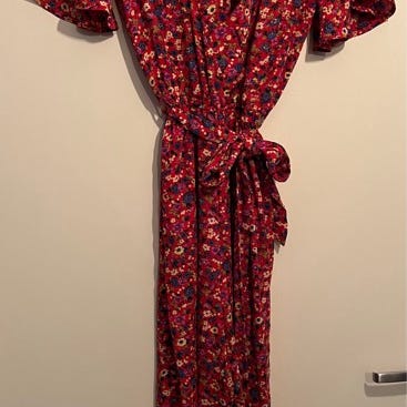 Jumpsuit med snøring og lommer. Blomster på mørkeblå jumpsuit.