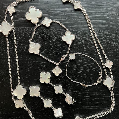 Lekkert sett i sterling sølv, belagt med 14k hvitt gull