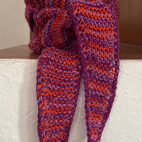 Selger heklet rødt skjerf laget i vinter passer fint til høsten.