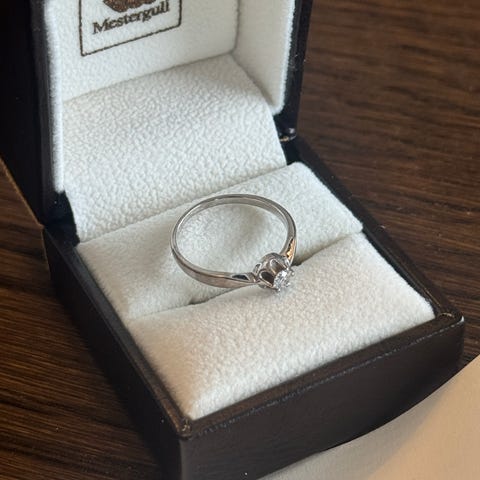Lekker ring i sterling sølv belagt med 14k hvitt gull