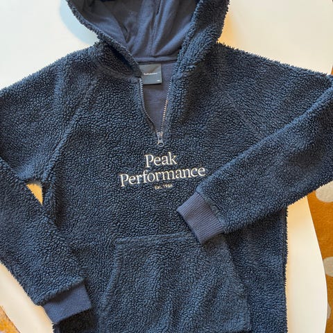 Mørkeblå fleecegense med lommer i sidene. Str. 12 år. Selges kr. 75.-