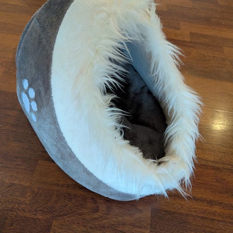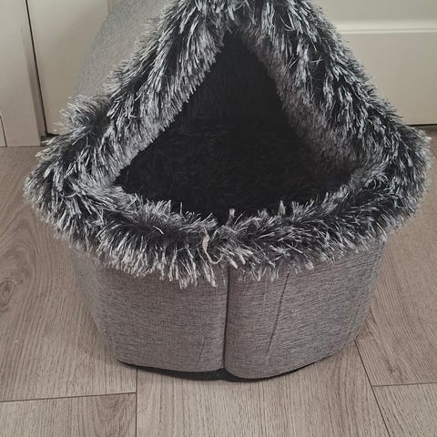 Nydelig katteseng med tak.