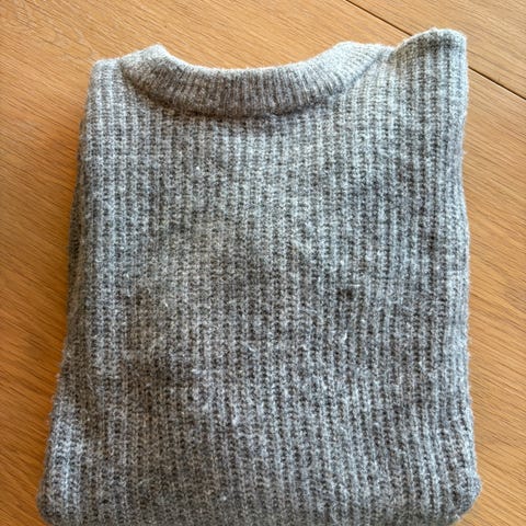 Veldig fin grå genser fra Hennes og Mauritz selges billig. Den er gråmelert med halv-høyhalset krage.
